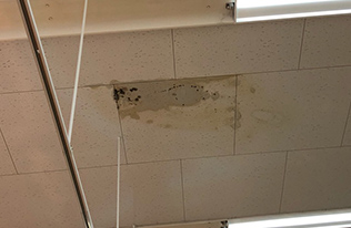 薄い茶色の輪のようなシミは典型的な雨漏りの症状です。